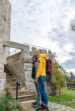* Länge: 6,2 km * Start am Wandertreff im Puschkin-Park Bad Salzungen neben dem Gradierwerk, * entlang der Kurpromenade, * vorbei am Solebad und an der Tourist-Info, * Storchennest, Wohnmobilstellplatz mit großem Kinderspielplatz direkt am Werraufer, * entlang der Werraaue durch die Werrawiesen, Ortsteil Kloster, * Aufstieg zum Frankenstein mit Burgruine, Wald- und Kleinkinderspielplatz, grünes Klassenzimmer, * Lasso-Runde um dem Frankenstein, gleicher Weg zurück ins Tal In der herrlichen Landschaft im Werratal zwischen Thüringer Wald und Rhön liegt die schöne Kur- und Kreisstadt Bad Salzungen. Hier führt der Storchenstieg an zwei Storchskulpturen und der Storchenwiese mit drei Schautafeln zum Thema Storch vorbei. Außerdem gab es früher mehrere Horststandorte in der Stadt. Heute finden die Störche auf dem Bohrturm der Gradieranlagen ein Zuhause und genießen dabei die gute Salzunger Sole-Luft. Denn in dem historischen Gradierwerk rieselt Sole von den Reisigwänden, hier atmet man wie bei einem Spaziergang am Meer. Auf dem Turm wurde eine moderne Stahlkonstruktion als neue Nestunterlage errichtet und mit einer Storchenkamera ausgerüstet. Diese Kamera überträgt live auf einen TV an der Tourist-Info. Aber zurück zum Gradierwerk, denn hier beginnt am Wandertreff unser "Storchenstieg". An der Kurpromenade laufen wir entlang, vorbei am Sole-Aktivbad mit Saunalandschaft. Hier kann nach der Wanderrunde mit der ganzen Familie tiefen entspannt werden. Wir erreichen die Touristinfo mit besagter Storchen-Cam und laufen weiter zum Wohnmobilstellplatz, wo sich die Kinder auf dem großen Kinderspielplatz direkt austoben können. Entlang der Werraaue und durch die Werrawiesen kommen wir zum Ortsteil Kloster. Hier wird auf Schautafeln die Ortsgeschichte erklärt. Es beginnt ein Anstieg zur Burgruine Frankenstein und wir erreichen den Waldspielplatz sowie das grüne Klassenzimmer. Nach einer Lasso-Runde um den Frankenstein nehmen wir den gleichen Weg zurück ins Tal. Wem all dieses Angebot am Wegesrand noch nicht ausreicht: Ihr findet darüber hinaus auch Relaxliegen, ein Guckrohr und eine Fotowand entlang des Weges. Dieser Weg wurde durch die Europäische Union und den Freistaat Thüringen mit EFRE-Mitteln gefördert.Hinweis: Für die Darstellung der Wege und touristischen Anbieter nutzen wir die Thüringer Tourismusdatenbank ThüCAT.