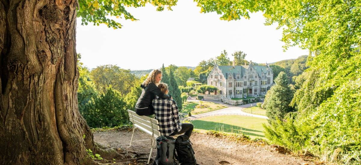 Dieser Rundweg verbindet alle wichtigen Sehenswürdigkeiten des Landschaftsparks: faszinierende Naturkulisse, Parkarchitekturen, das aufwändig von Hand angepflanzte Teppichbeet und das prachtvolle Schloss im Stil der englischen Spätrenaissance. Mit der BUGA 2021 gelangte der Park zu neuer Bekanntheit. Vom Start am Schloss verläuft der gut ausgebaute und befestigte Weg vorbei an der Teufelsbrücke, über den Morgentorfelsen, das Chinesische Häuschen und den Blumenkorbfelsen zurück zum Schloss.Hinweis: Für die Darstellung der Wege und touristischen Anbieter nutzen wir die Thüringer Tourismusdatenbank ThüCAT.